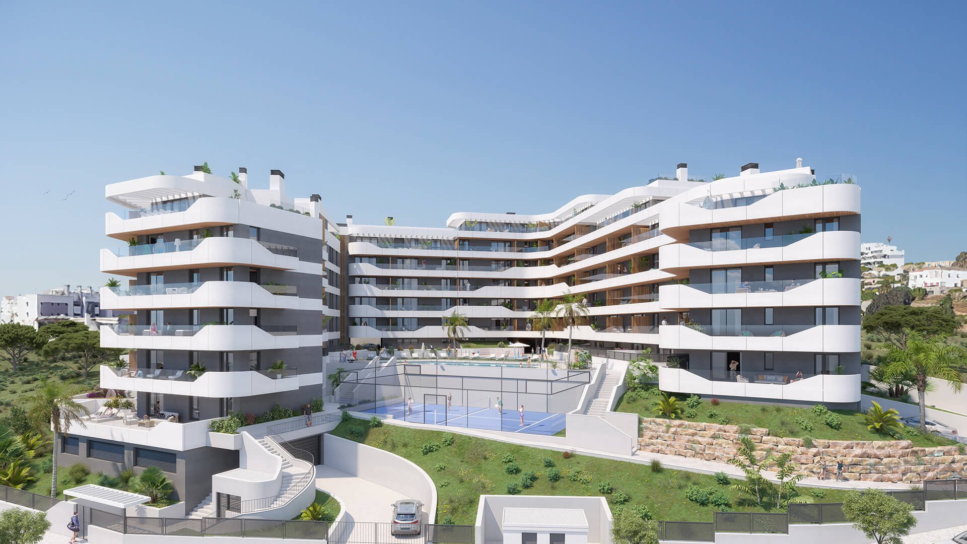 Piscina, gimnasio, sala gourmet, coworking y pista de pádel